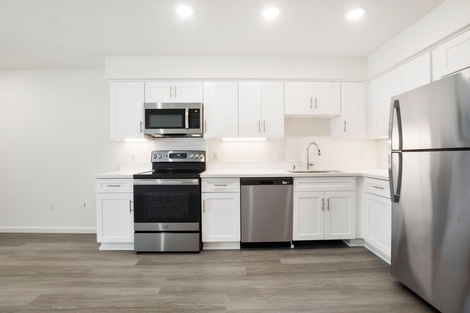 Your 1-bed, 1-bath oasis boasts modern finishes like stainless steel appliances, vinyl floor planking, and sparkling quartzite countertops. Whip up delicious meals in the kitchen, then gather with loved ones in the spacious living area. In-unit laundry and central A/C ensure year-round comfort, while an elevator and ADA compliance make this a perfect living space for everyone.